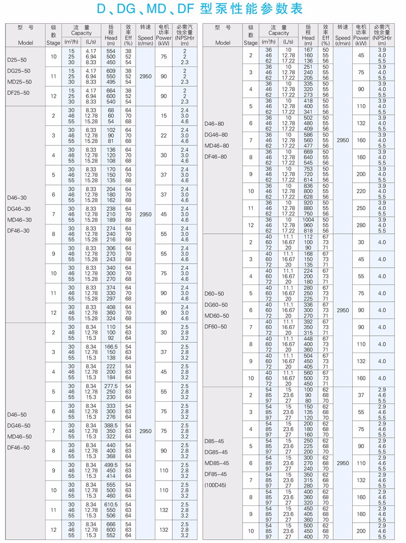 DG型高吸程單吸多級熱水離心泵供輸送清水或物理及化學性質(zhì)類似于清水的其他液體之用。介質(zhì)溫度不大于105℃,適用于小型鍋爐給水或輸送熱水和類似熱水的介質(zhì)。也可根據(jù)用戶要求制作介質(zhì)溫度不大于150℃場合。